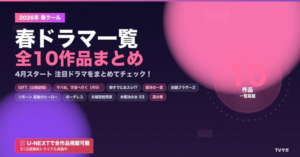 【2026年春ドラマ一覧】4月スタート全作品まとめ!U-NEXTで視聴できる春ドラマを徹底紹介