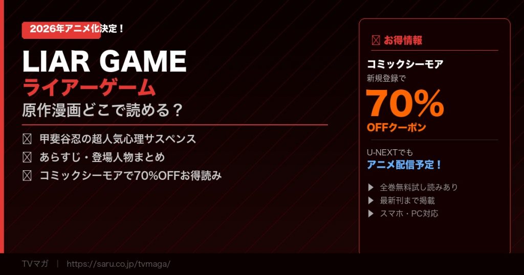 そんな疑問を持つあなたへ。この記事ではLIAR GAMEの原作漫画をお得に読む方法と、アニメ化の最新情報を解説します。