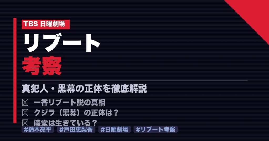 本記事では「リブート 考察」をテーマに、真犯人・黒幕の正体、一香リブート説、主要な伏線など最新情報をまとめて解説します。