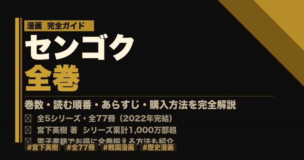 この記事では「センゴク 全巻」を読みたい方に向けて、シリーズ構成・各巻あらすじ・読む順番・登場人物・おすすめの購入方法を徹底解説します。