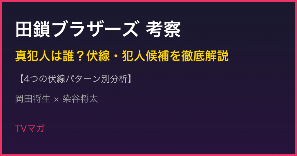 【田鎖ブラザーズ 考察】真犯人は誰?伏線まとめ・犯人候補4選を徹底解説【岡田将生×染谷将太】