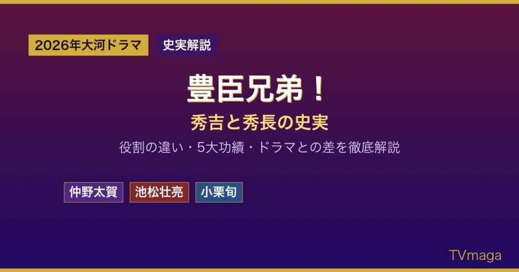 2026年NHK大河ドラマ第65作「豊臣兄弟!」(仲野太賀・池松壮亮主演)は、基本的に史実に沿いながらも、いくつかの点でドラマ的な脚色が加えられています。