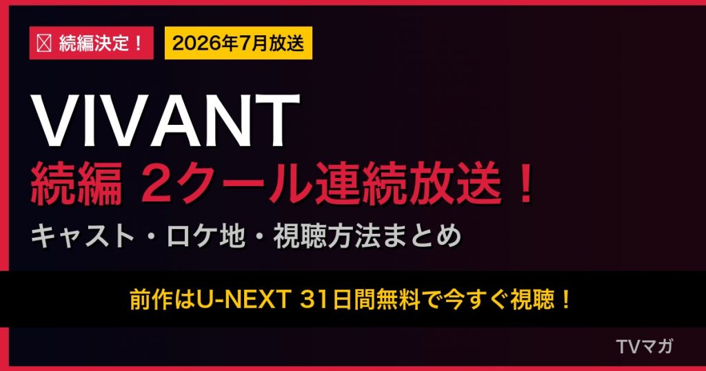 2023年に社会現象を巻き起こした日曜劇場「VIVANT」の続編が、2026年7月から2クール連続放送という異例の規模で帰ってきます。
