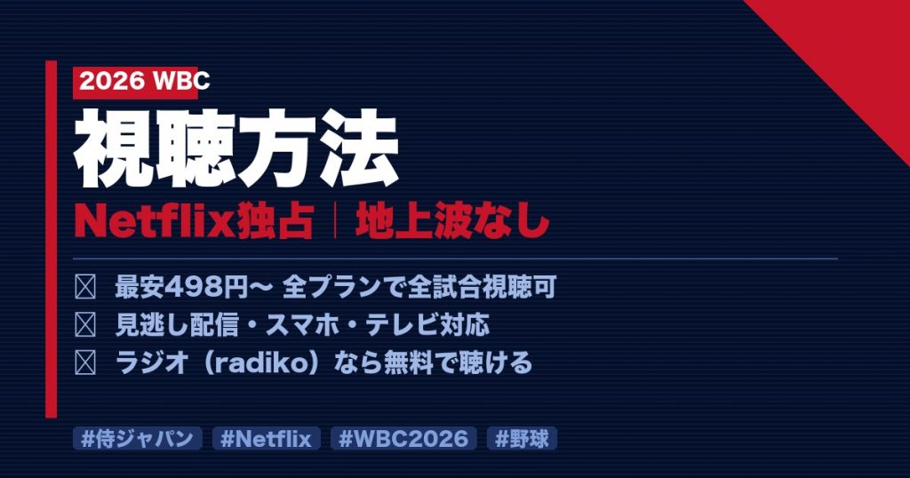 - WBC2026はNetflix独占配信、地上波・BS・CSなし